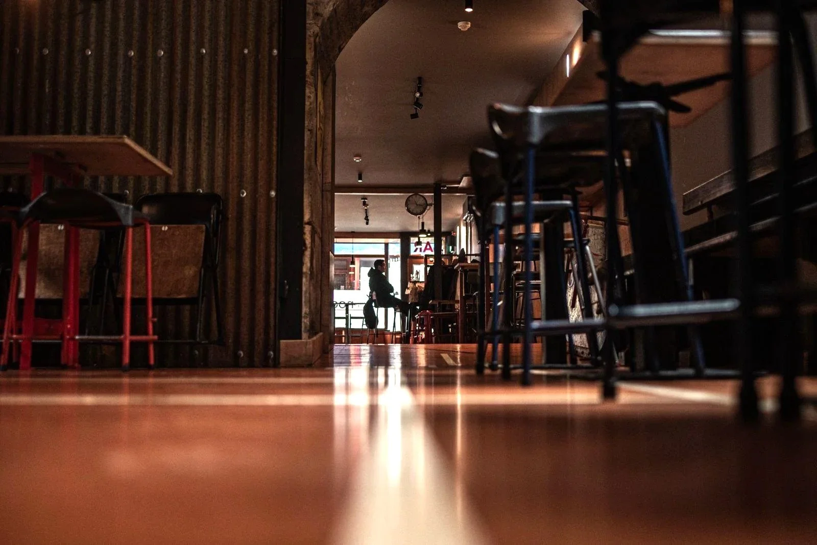 A warm, lived-in bar made up of reclaimed pieces and familiar details. The wooden floor came from the old central school gym and if you look closely, you can still spot its past life.